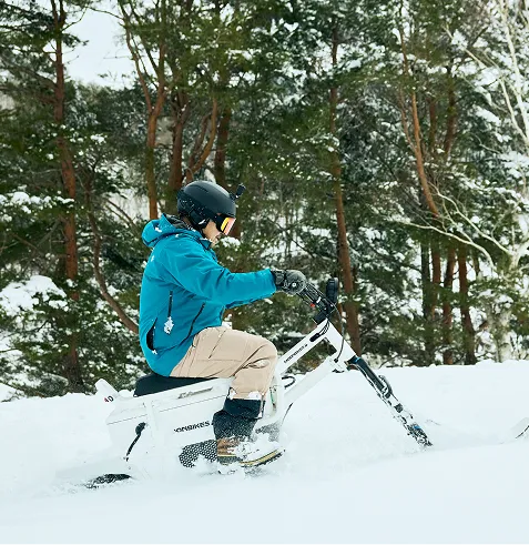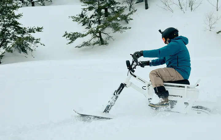 Feel the excitement as you glide over snowy landscapes with the unique Moon Bike.